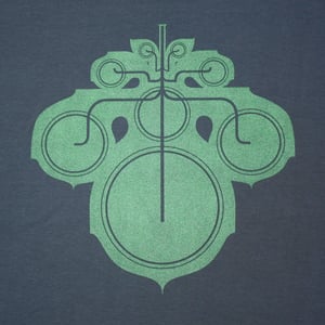 Fig Leaf design printed with a hand mixed Metallic Green ink on a Dark Grey shirt.